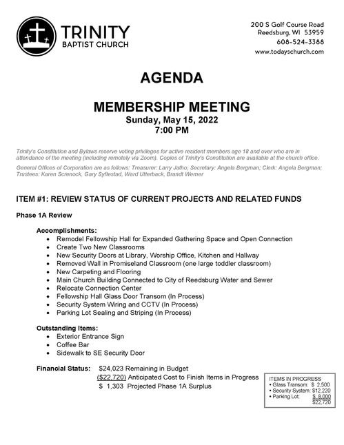 TBC SPECIAL MEMBERSHIP MEETING TONIGHT (5/15/22)
